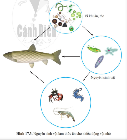 Quan sát hình 17.3 và cho biết nguyên sinh vật là thức ăn của những động vật nào.