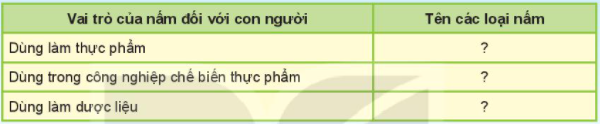 Nêu tên các loại nấm em biết và tác dụng của chúng rồi hoàn thành bảng theo mẫu sau: