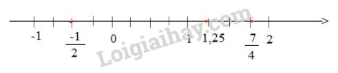 Biểu diễn các số hữu tỉ sau trên trục số: \( - \frac{1}{2};1;1,25;\frac{7}{4}\)