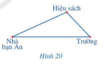 Bạn An có hai con đường đi từ nhà đến trường. Đường đi thứ nhất là đường đi thẳng từ nhà đến trường, đường đi thứ hai là đường đi thẳng từ nhà đến hiệu sách rồi đi thẳng từ hiệu sách đến trường (Hình 20). Theo em, bạn An đi từ nhà đến trường theo đường nào sẽ gần hơn?