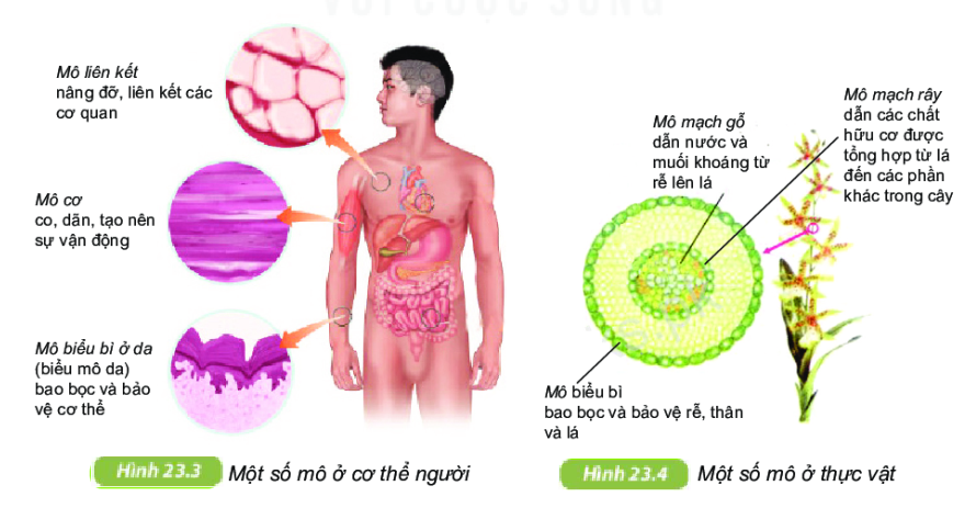 Quan sát hình 23.3 và 23.4 nêu một số mô ở người và ở thực vật.