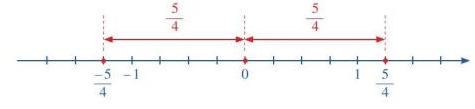 Nêu nhận xét về khoảng cách từ hai điểm \(\frac{-5}{4}\) và \(\frac{{ 5}}{4}\) đến điểm 0.
