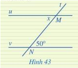 Vì u // v nên x = 50\(^\circ \) ( 2 góc so le trong)