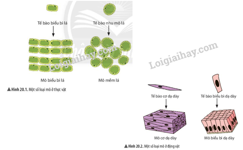 Hình dạng và cấu tạo của các tế bào hình thành nên mỗi loại mô khác nhau cả về hình dạng, màu sắc và kích thước.