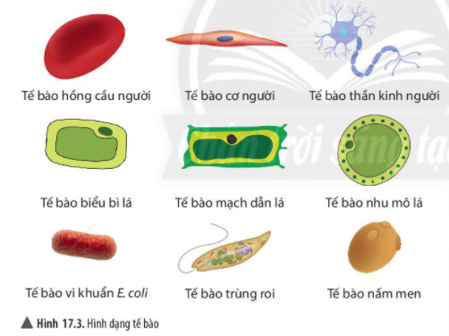 Hãy cho biết một số hình dạng của tế bào trong hình 17.3.