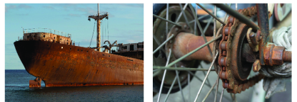 Quan sát hình 11.3, 11.4 và 11.5 em hãy cho biết những vật liệu nào dễ bị ăn mòn, bị hoen gỉ dẫn đến hư hỏng công trình, vật dụng. Nêu nguyên nhân dẫn đến sự hư hỏng đó.