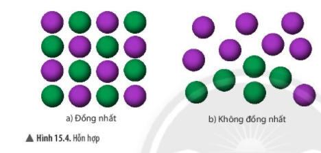 Quan sát hình 15.4, em hãy nhận xét về sự phân bố thành phần các chất có trong hỗn hợp đồng nhất và không đồng nhất?