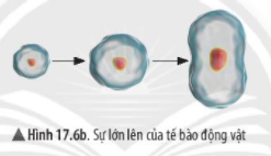 Quan sát hình 17.6a, 17.6b, cho biết dấu hiệu nào cho thấy sự lớn lên của tế bào?