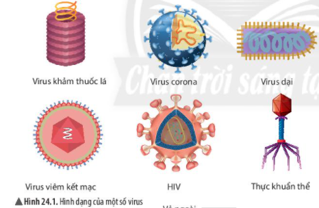 Nhận xét về hình dạng của một số virus trong hình 24.1.
