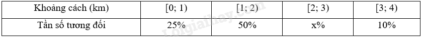 Bảng tần số tương đối ghép nhóm sau cho biết thông tin về tỉ lệ học sinh lớp 9A theo khoảng cách từ nhà đến trường: