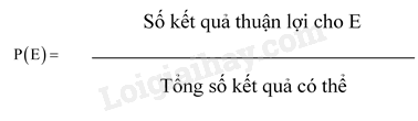 + Sử dụng kiến thức về cách tính xác suất bằng tỉ số để tính: Giả thiết rằng các kết quả có thể của một hành động hay thực nghiệm là đồng khả năng. Khi đó, xác suất của biến cố E, kí hiệu là P(E), bằng tỉ số giữa số kết quả thuận lợi cho biến cố E và tổng số kết quả có thể.