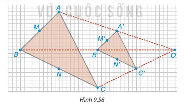 Lấy điểm O và vẽ tam giác A'B'C' như Hình 9.58. Trên các tia OA', OB', OC', lấy các điểm A, B, C sao cho OA = 2OA', OB = 2OB', OC = 2OC'