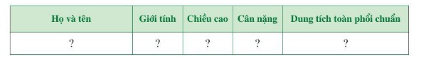 Sử dụng công thức đã nêu, từng học sinh tính dung tích toàn phổi chuẩn của mình, người thân trong gia đình ở độ tuổi từ 6 đến 14 tuổi (nếu điều kiện cho phép).