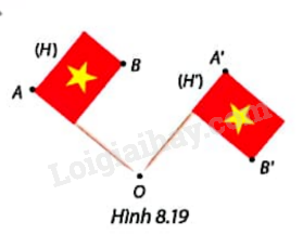 Trong Hình 8.19, Lá cờ (H) được quay quanh điểm O theo chiều kim đồng hồ đến vị trí mới (H’).