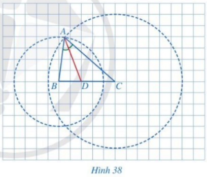 Trong Hình 38, tam giác ABC có AD là đường phân giác của góc BAC. Giả sử mỗi ô vuông của lưới ô vuông có độ dài cạnh bằng 1 cm.