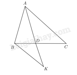Mà \(\frac{{DB}}{{DC}} = \frac{{AB}}{{AC}}\) nên \(\frac{{BK}}{{AC}} = \frac{{AB}}{{AC}} \Rightarrow AB = BK\)