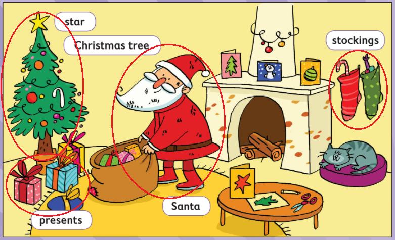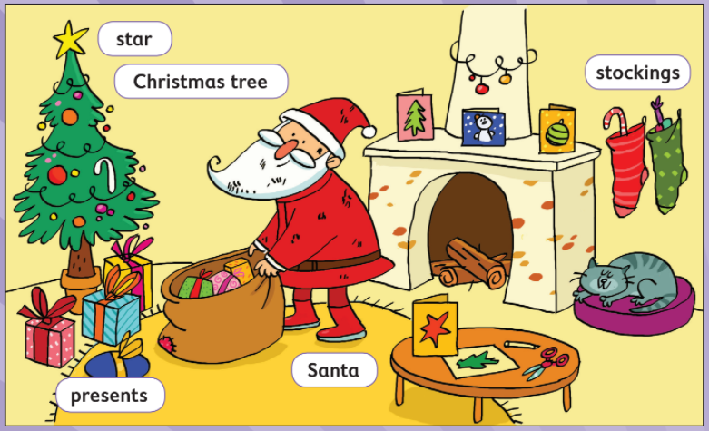 Học sinh trang trí thiệp chức mừng Giáng sinh. Sau đó tặng cho bạn của mình và nói: Happy Christmas (Giáng sinh vui vẻ)