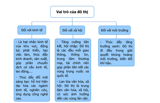 Lập sơ đồ theo gợi ý sau để thể hiện vai trò của đô thị.