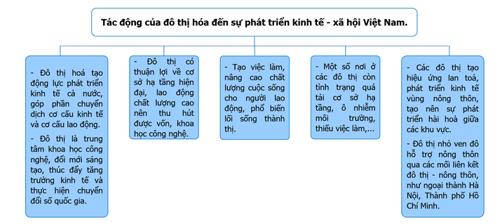 Vẽ sơ đồ thể hiện tác động của đô thị hoá đối với sự phát triển kinh tế – xã hội ở Việt Nam.