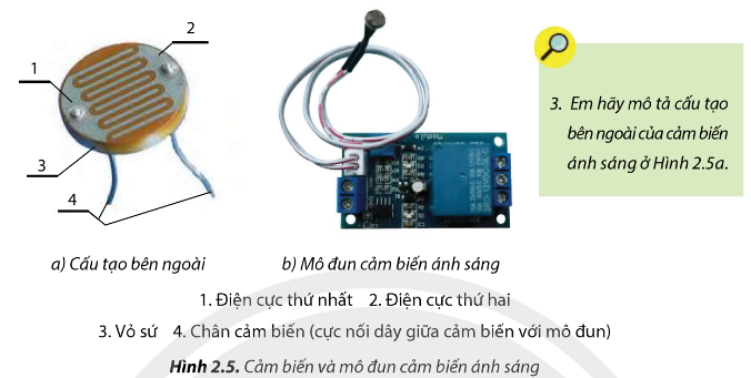 Em hãy mô tả cấu tạo bên ngoài của cảm biến ánh sáng ở Hình 2.5a