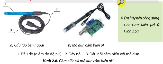 Em hãy nêu công dụng của cảm biến pH ở Hình 2.6a