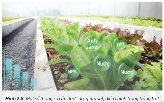Em hãy đề xuất những cảm biến dùng để đo, giám sát và điều chỉnh các thông số cần thiết cho vườn rau như minh hoạ ở Hình 2.8.