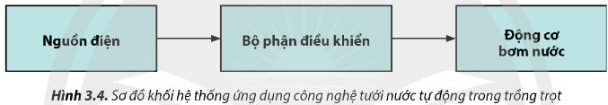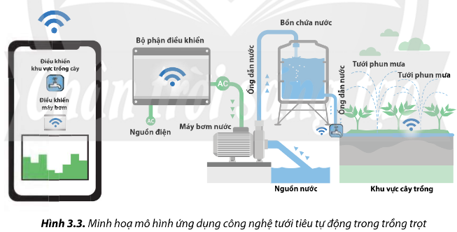 Hãy giải thích hoạt động của mô hình ứng dụng công nghệ tưới tiêu tự động trong trồng trọt như minh hoạ ở Hình 3.3.
