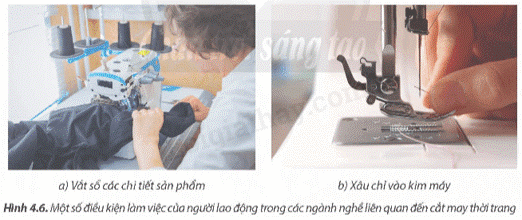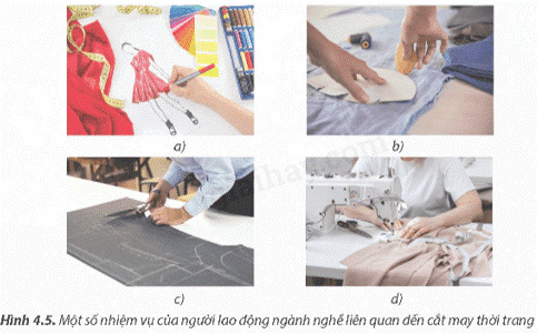 Hãy mô tả các nhiệm vụ của người lao động ngành nghề liên quan đến cắt may thời trang minh họa trong Hình 4.5.