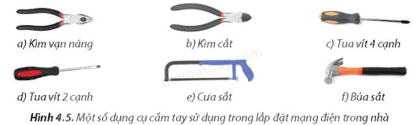 Các dụng cụ cầm tay trong Hình 4.5 được sử dụng vào những trường hợp nào trong lắp đặt mạng điện trong nhà?