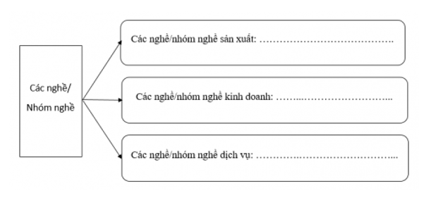 Ghi tên các nghề thuộc hoạt động sản xuất, kinh doanh, dịch vụ và những thông tin, yêu cầu cơ bản của từng nhóm nghề ở địa phương em vào bảng sau: