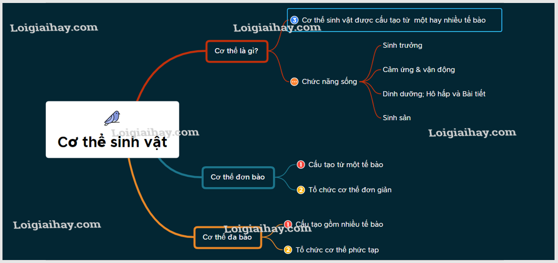 Sơ đồ tư duy Cơ thể đơn bào và cơ thể đa bào: