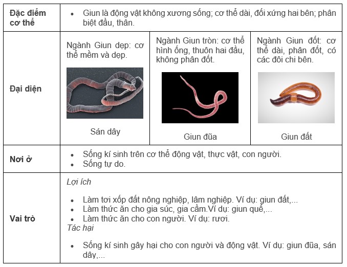 - Động vật không xương sống bao gồm nhiều ngành: Ruột khoang, các ngành Giun, Thân mềm, Chân khớp,...