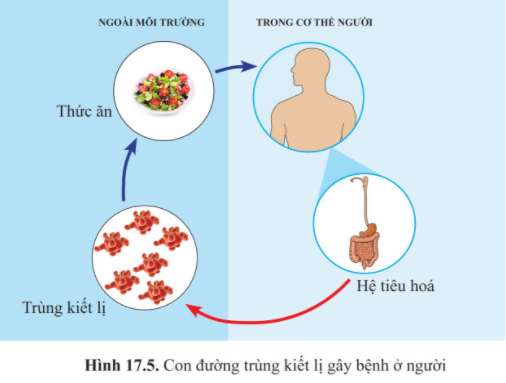+ Trùng kiết lị có chân giả ngắn và sinh sản nhanh, theo thức ăn, nước uống vào ống tiêu hóa người gây lở loét ở thành ruột, đau bụng, đi ngoài phân nhầy có lẫn máu.