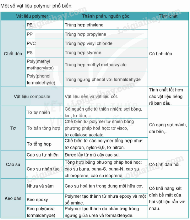 Polyethylene, polyacrylonitrile, polystyrene, poly(vinyl chloride), poly(methyl methacrylate) được điều chế từ phản ứng trùng hợp.