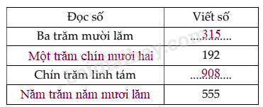 Đọc số hoặc viết số lần lượt từ hàng trăm, hàng chục, hàng đơn vị.