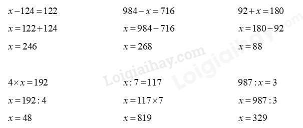 $x - 124 = 122$