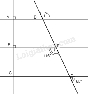 a) Ta có \(\widehat {{F_1}} + \widehat {{F_2}} = {180^0}\) (hai góc kề bù) \( \Rightarrow \widehat {{F_2}} = {180^0} - {65^0} = {115^0}\).