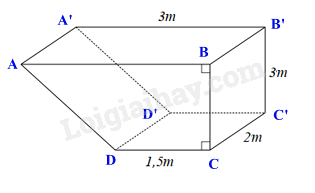 \(V = {S_{ABCD}}.CC' = 6,75.2 = 13,5\left( {{m^3}} \right)\)