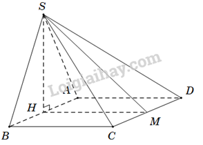 \(SH = \frac{{a\sqrt 3 }}{2}\), \(HM = BC = 2a.\) Vậy \({S_{\Delta SHM}} = \frac{1}{2}.\frac{{a\sqrt 3 }}{2}.2a = \frac{{{a^2}\sqrt 3 }}{2}.\)