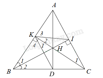\( \Rightarrow \widehat {{K_1}} = \widehat {{K_2}}\) hay KC là phân giác của \(\widehat {IKD}\). (đpcm)
