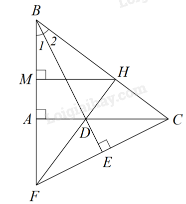 Suy ra \(\frac{{BM}}{{BA}} = \frac{{MH}}{{FH}}\) suy ra \(MH.AB = FH.MB\) (đpcm).