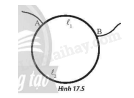 Câu 10: Một chiếc vòng làm bằng một dây dẫn có điện trở R0=12Ω. Dòng điện đi vào và đi ra khỏi vòng dây tại hai điểm A và B như Hình 17.5. A và B chia vòng dây thành hai phần có chiều dài lần lượt là l1 và l2. Tìm tỉ số \(\frac{{{\ell _1}}}{{{\ell _2}}}\)  sao cho điện trở của mạch giữa hai điểm A và B là \(R = \frac{8}{3}{\rm{\Omega }}\)