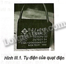 Câu 5. Quạt điện nhà bạn A bị hỏng chiếc tụ điện như Hình III.1 và cần được thay thế. Cửa hàng đồ điện có một số loại tụ điện đang bán như sau:
