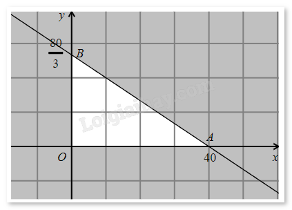 Ta thấy miền nghiệm của hệ là một miền tam giác OAB kể cả biên, trong đó O(0;0), A(40;0), \(B\left( {0;\frac{{80}}{3}} \right)\).