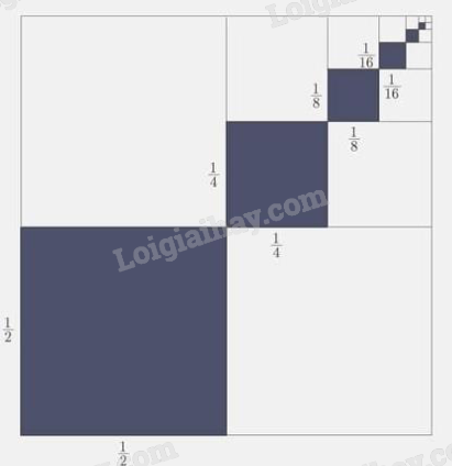 vuông cạnh bằng 1. Nó tô màu xám các hình vuông nhỏ được đánh số lần lượt là 1, 2, 3, 4, ...n,...