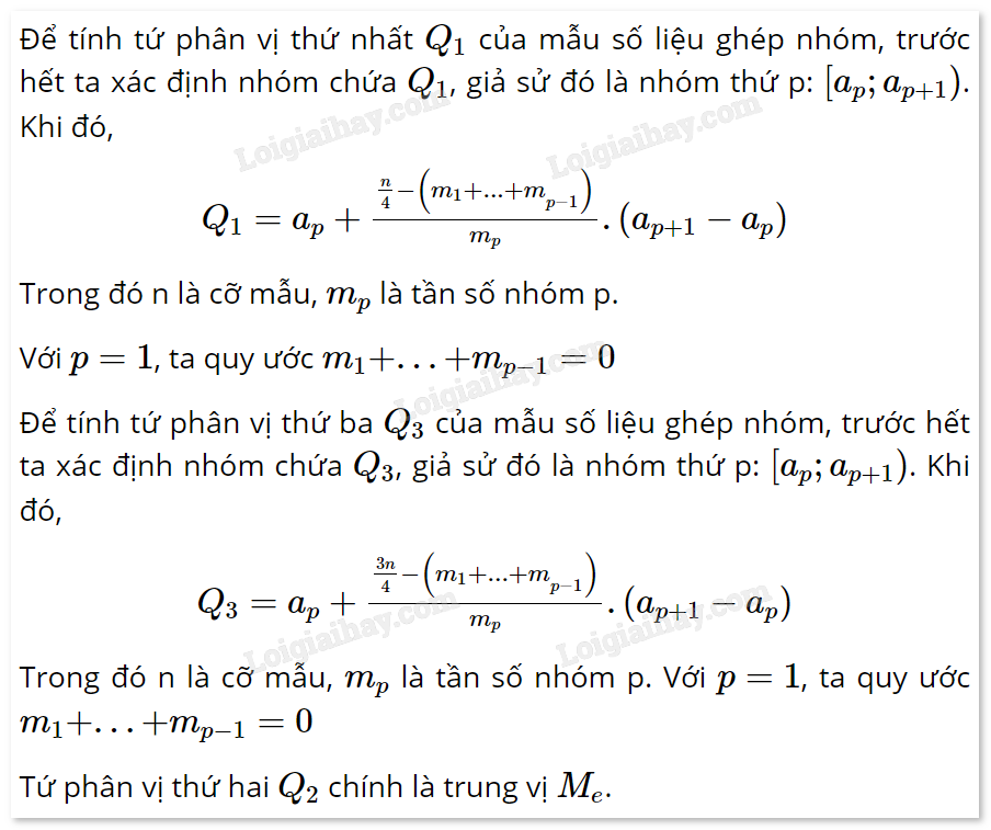 2. Trung vị và tứ phân vị của mẫu số liệu ghép nhóm
