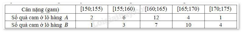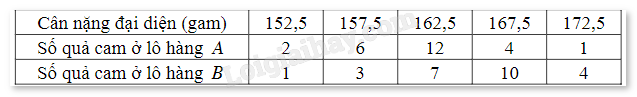 Thấy \(\overline {{x_A}} < \overline {{x_B}} \). Vậy nếu so sánh theo số trung bình thì cam ở lô hàng B nặng hơn cam ở lô hàng A.