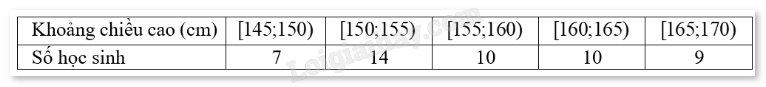 a) Đúng. Giá trị đại diện nhóm [150;155) là \(\frac{{150 + 155}}{2} = 152,5\).