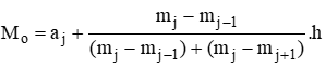 trong đó mj là tần số của nhóm j (quy ước mo = mk+1 = 0) và h là độ dài của nhóm.