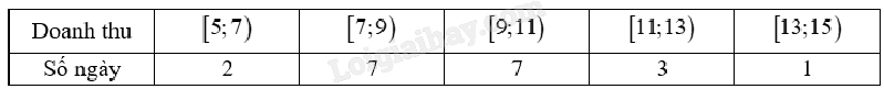 Câu 14. Doanh thu bán hàng trong 20 ngày được lựa chọn ngẫu nhiên của một cửa hàng được ghi lại ở bảng sau (đơn vị: triệu đồng).